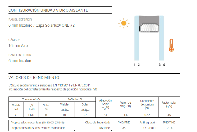 Todas as caixilharias poderão incluir vidro térmico, por exemplo, SOLARLUX ONE, em diversas espessuras, dependendo do pretendido pelo cliente, para maior eficiência e desempenho térmico.